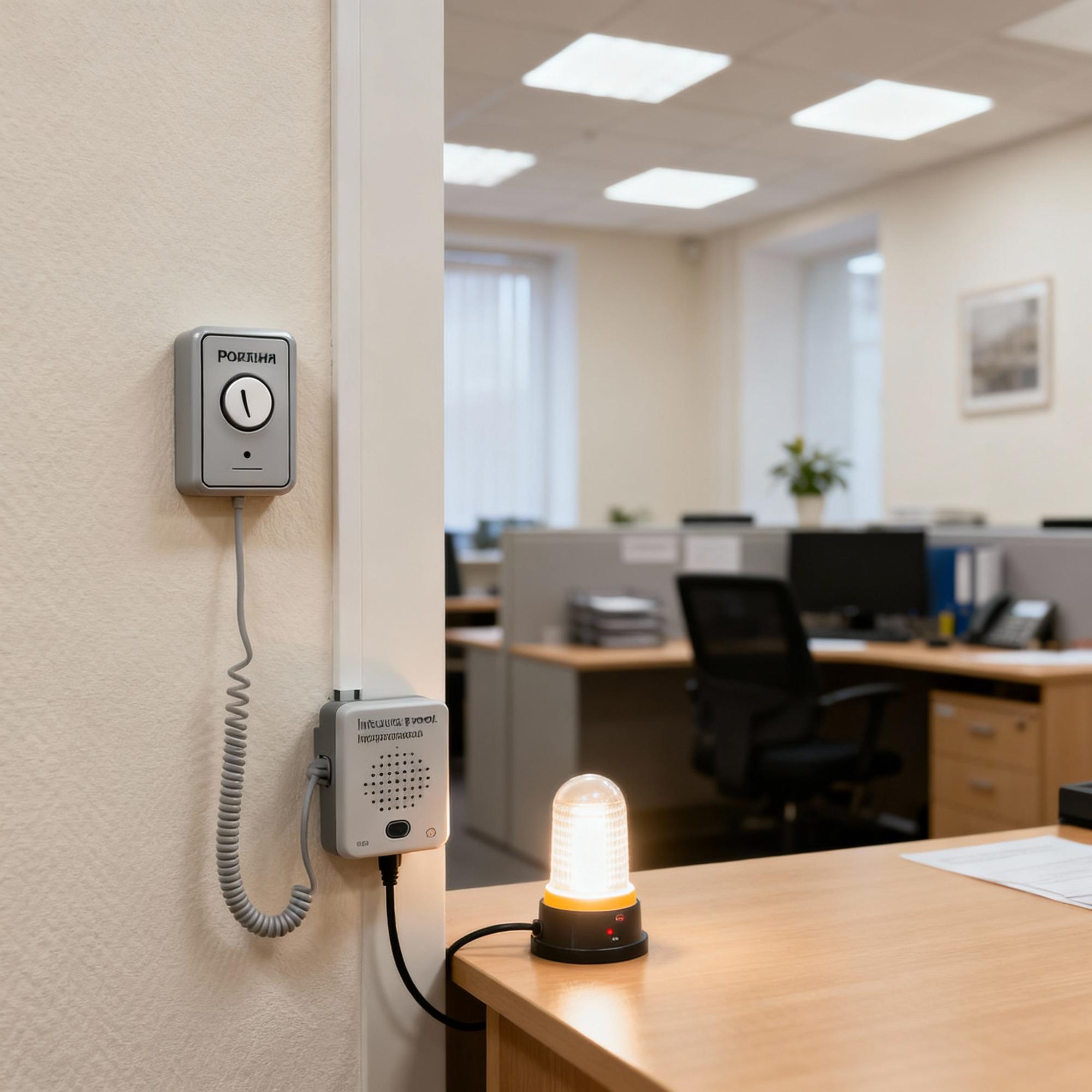 Кнопка вызова устанавливается рядом с входом на высоте 0,85-1,0 м с обеспечением свободного подъезда коляски. Приемник размещается внутри здания в зоне постоянного присутствия персонала.